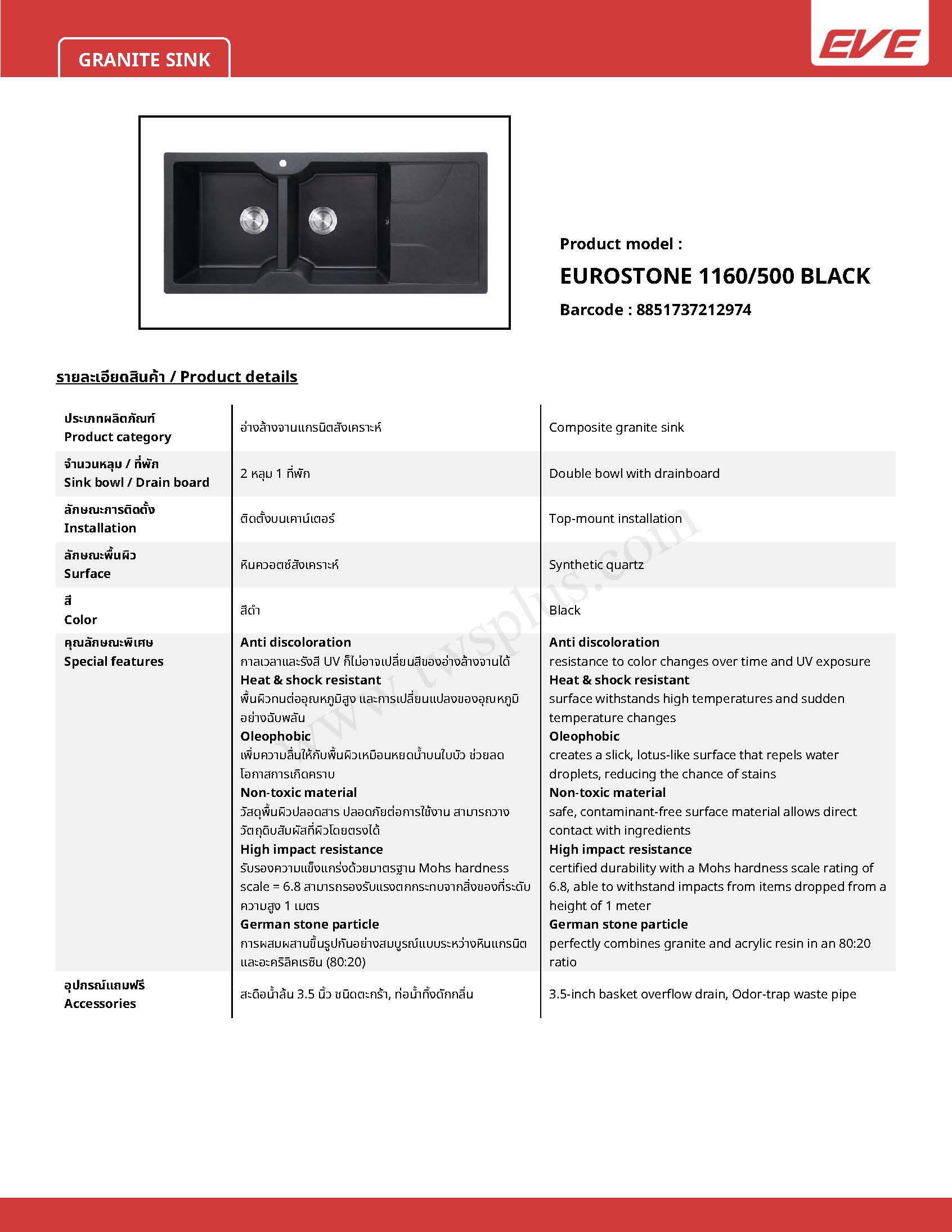 รหัสสินค้า EUROSTONE 1160/500 BLACK