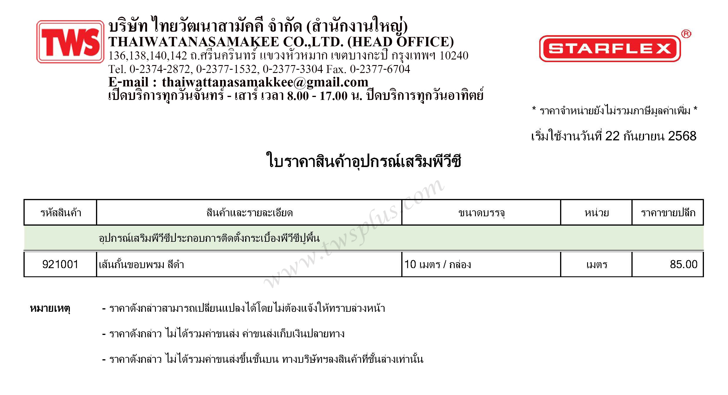 921001 เส้นกั้นขอบพรม สีดำ หนา 5 mm. ราคา 850 บาท/กล่อง*ราคาที่ลงโฆษณาบนเว็บไซต์